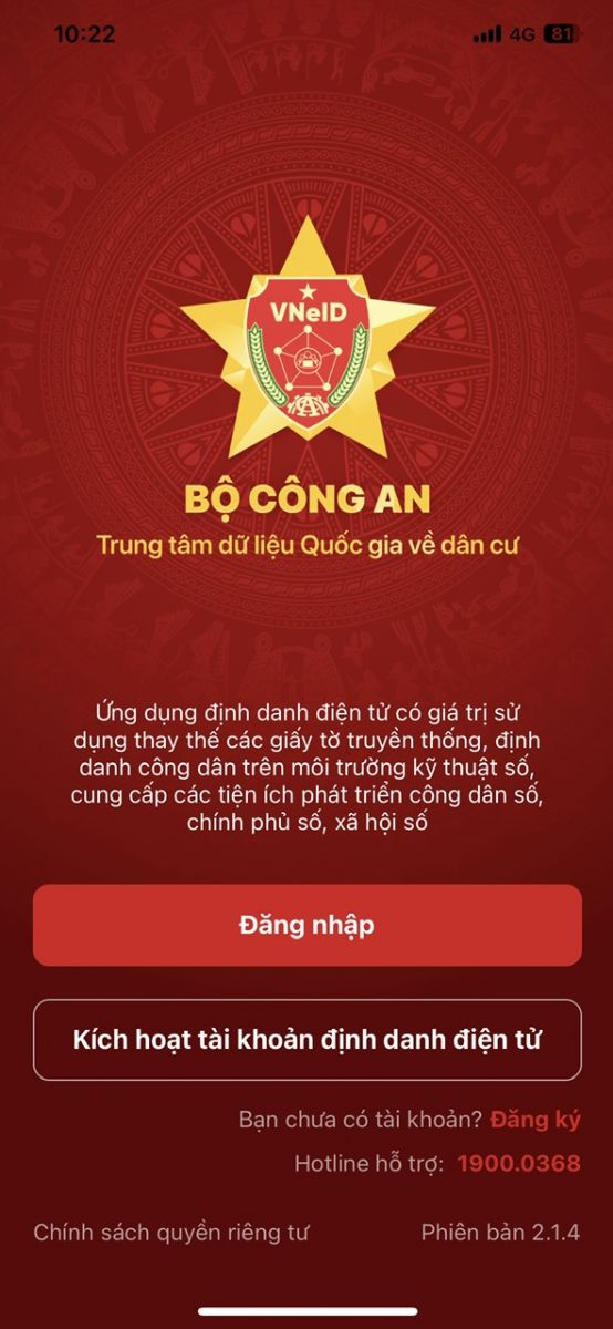 - Bước 4: Đăng nhập tài khoản ứng dụng VNEID.