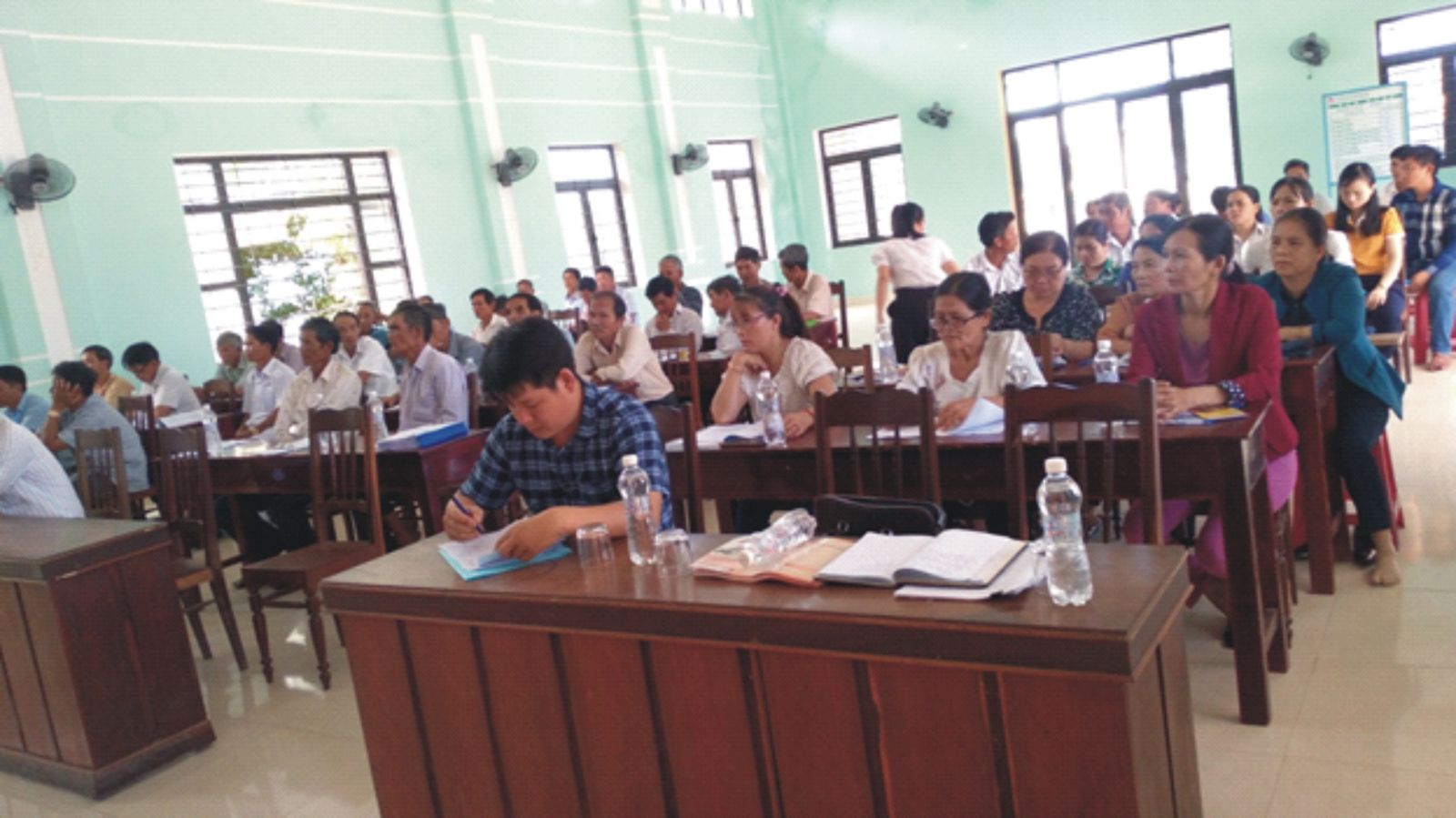 Tham dự buổi TGPL về phía UBND huyện có ông Nguyễn Trung Sơn – Phó Phòng Tư pháp huyện Phù Mỹ, về phía địa phương có ông Thái Bình Minh - Phó Chủ tịch UBND xã Mỹ Phong, về phía Trung tâm có ông Lê Thành Trung - Giám đốc Trung tâm TGPL Nhà nước tỉnh cùng các thành viên trong đoàn, bên cạnh đó có sự tham dự của hơn 80 hoà giải viên của 06 thôn thuộc xã Mỹ Phong cũng có mặt.