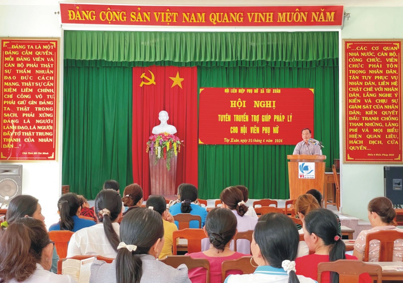 Sáng ngày 25 tháng 4 năm 2024, Trung tâm Trợ giúp pháp lý Nhà nước tỉnh Bình Định, Chi nhánh TGPL số 5 đã phối hợp với Hội liên hiệp phụ nữ xã Tây Xuân, huyện Tây Sơn tổ chức đợt trợ giúp pháp lý ngoài trụ sở kết hợp với sinh hoạt chuyên đề pháp luật cho cán bộ, hội viên hội phụ nữ trên địa bàn toàn xã.