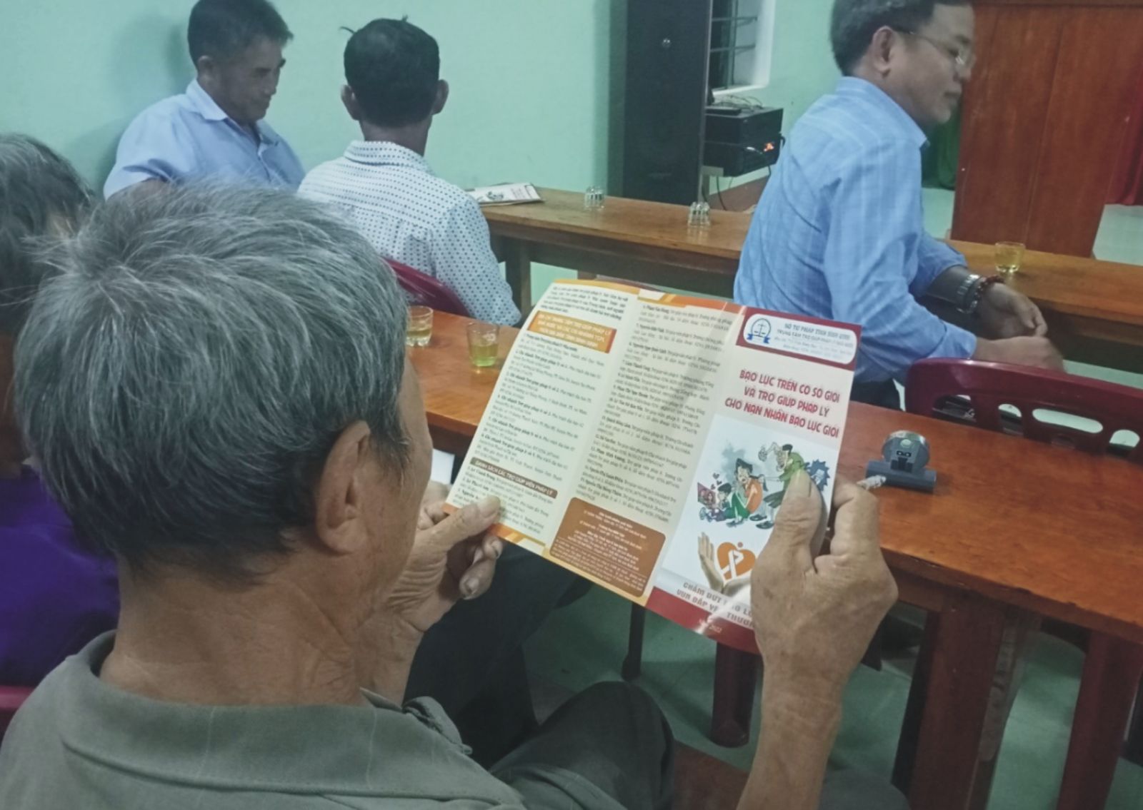 (Người dân tìm đọc tài liệu bạo lực gia đình)