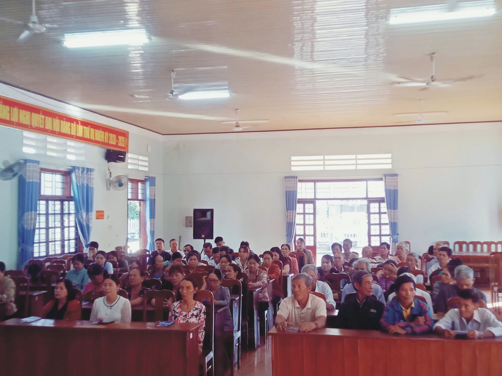 Hình ảnh người dân tham dự trợ giúp pháp lý tại Hội trường UBND xã Tây Phú