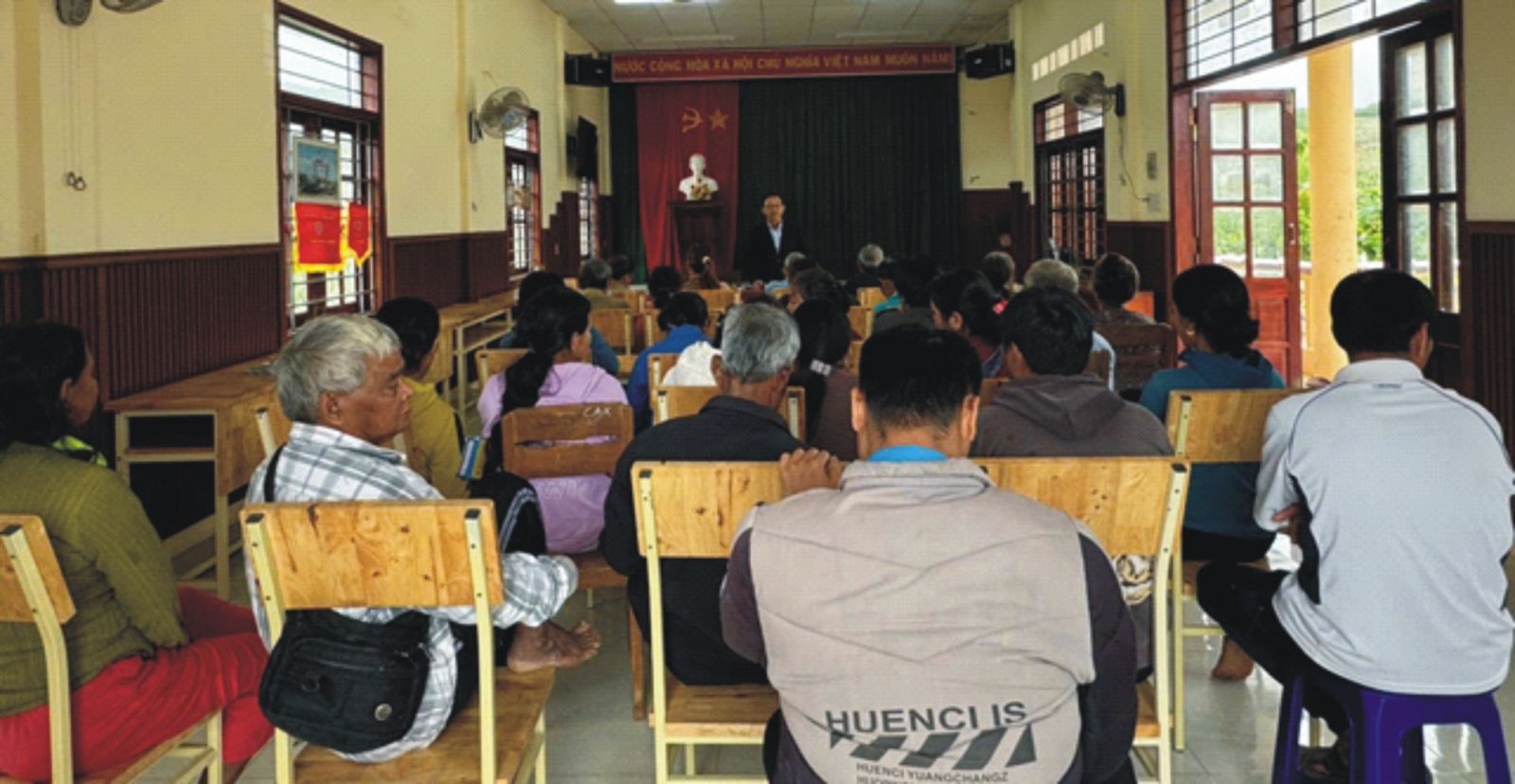 Hình ảnh: người dân tham dự buổi trợ giúp pháp lý ngoài trụ sở tại thôn 1 xã An Dũng.