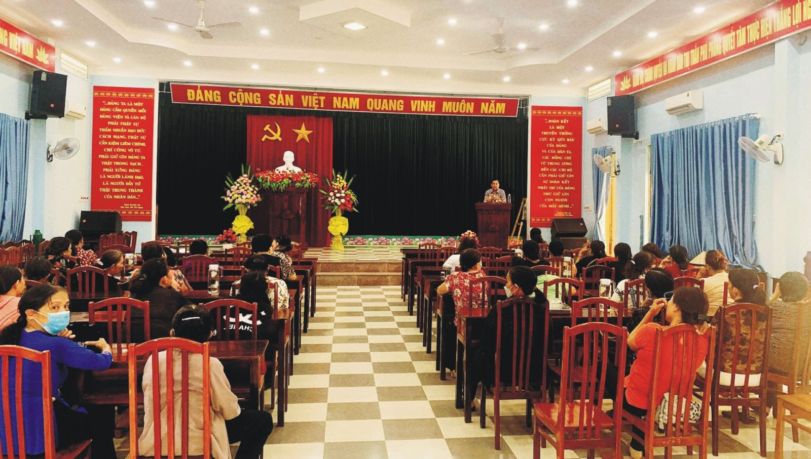 Buổi trợ giúp pháp lý có các đồng chí lãnh đạo UBND, BCH Hội liên hiệp phụ nữ và hơn 50 hội viên Hội liên hiệp phụ nữ thị trấn Phú Phong tham gia.
