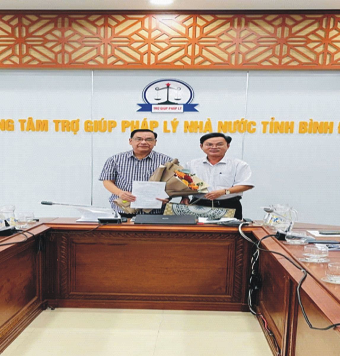 Tham dự buổi lễ có các đồng chí: Phạm Dân – Phó Giám đốc Sở Tư pháp tỉnh Bình Định; Lê Thành Trung – Giám đốc Trung tâm Trợ giúp pháp lý (TGPL) Nhà nước tỉnh Bình Định và toàn thể cán bộ, viên chức của Trung tâm TGPL.