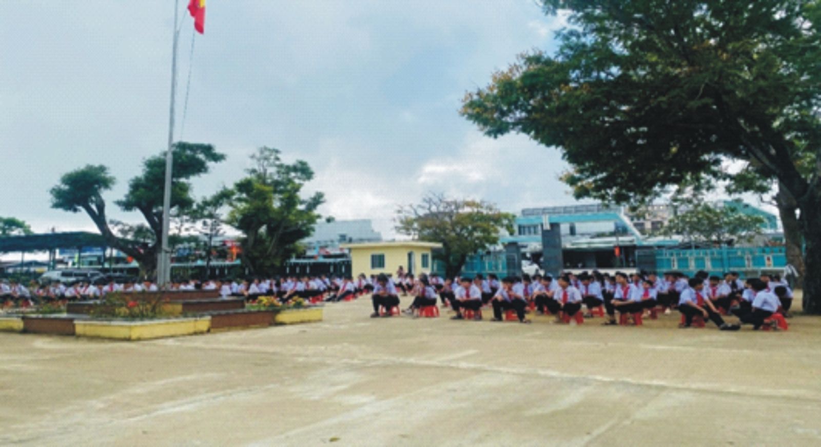 Học sinh tại Trường THCS Cát Tiến, xã Cát Tiến tham gia buổi tuyên truyền pháp luật