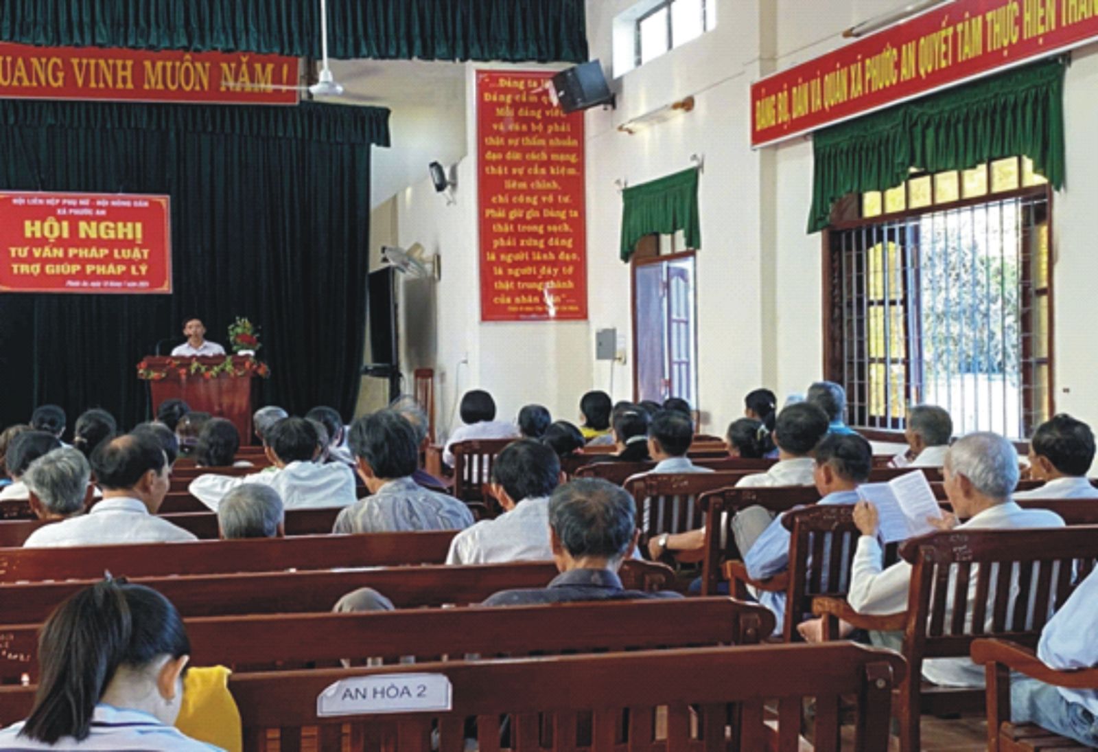 Sáng ngày 10/7/2024, Chi nhánh TGPL số 1 được sự hổ trợ của Trung tâm Trợ giúp pháp lý Nhà nước tỉnh, cùng với chính quyền địa phương đã tổ chức đợt trợ giúp pháp lý ngoài trụ sở kết hợp sinh hoạt chuyên đề pháp luật cho toàn thể nhân dân trên địa bàn tại trụ sở UBND xã Phước An, huyện Tuy Phước. Tham dự buổi sinh hoạt: Về phía Trung tâm Trung tâm Trợ giúp pháp lý có Trưởng Chi nhánh, Trưởng Phòng, chuyên viên pháp lý của Trung tâm; Về phía địa phương là lãnh đạo địa phương, đại diện các ban, ngành, đoàn thể của xã và sự góp mặt của hơn 60 người dân tham dự buổi sinh hoạt pháp luật.